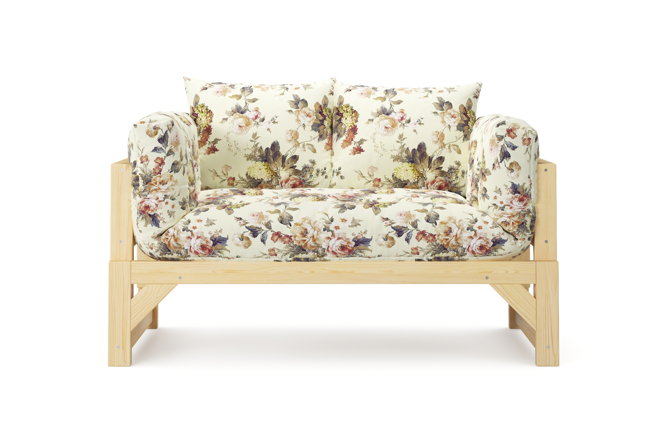 Максимальная нагрузка — 220кг. Ширина деревянной спинки 130 см. Приспинные подушки, представленные на фото, входят в комплект. Декоративные приобретаются отдельно. Диван продается без лакокрасочного покрытия, под самостоятельную покраску. Высота сиденья без матраса - 31 см, с матрасом 46 см.