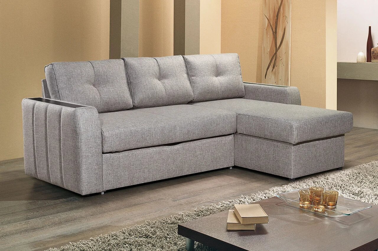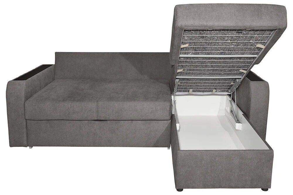 - Каркас диванной части, спального места и сиденья оттоманки: металлический