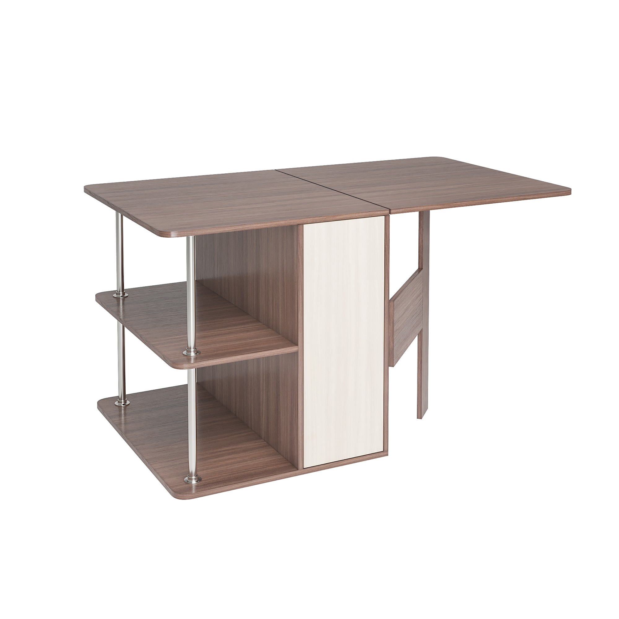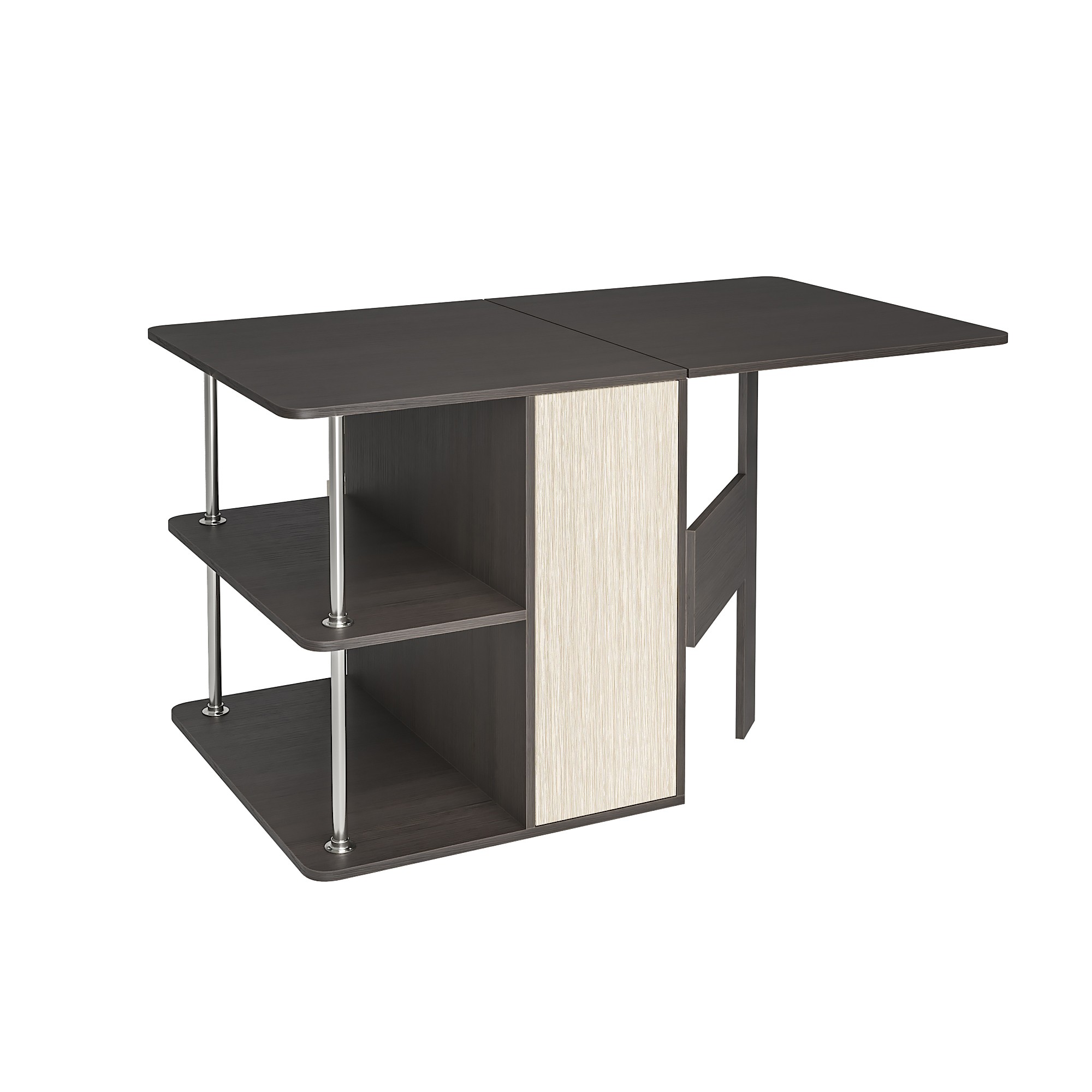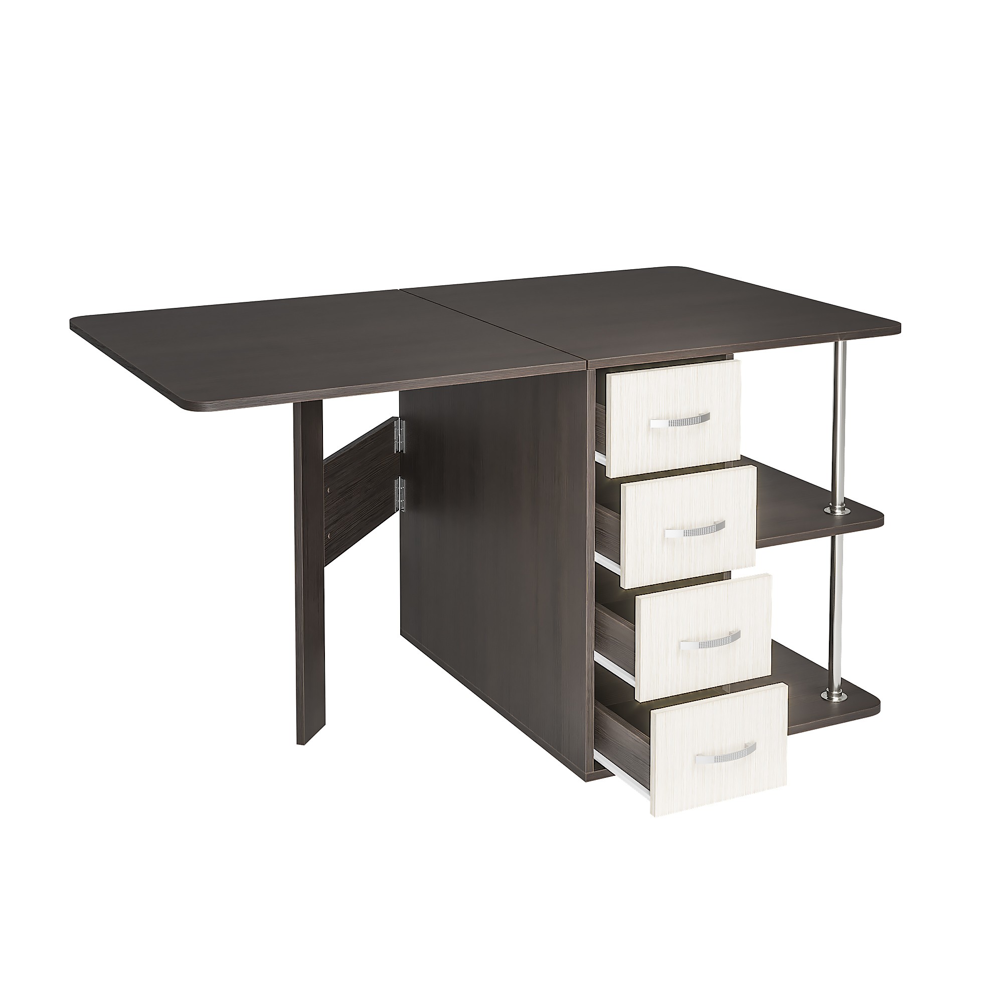 • С одной стороны стола находятся ящики для хранения, с другой – распашная створка, которую фиксирует "толкатель" (открывается при нажатии)